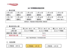 【 报名前的认同书】 1.不进行任何口头或文字形式的预留名额,确认名额以缴费为准。 2.开课第3节课后小班班级中不再添加任何学员,教练非被动弹劾情况,中途不主动换教练。 3.开课前5天均可办理退费,开课5天(含)以内不再受理退款,不接受任何形式的请求。 4.开课后不接受任何形式的调班、换课,寒假课程有1次请假并给予补课的机会,将在课程结束后安排1次补课,补课为大课,请假大于1次的同学按照1次补课计算,不来者视为放弃补课。 【集训的温馨提示】 (课前准备) 1.备好碳素羽毛球拍、羽毛球鞋、加长版大衣、运动服装、汗巾、充足的温水、干燥的备用衣物。 2.提前10分钟到达训练场地。 3.课前至少提前30分钟进食食物。 (课程中) 1.天气寒冷,建议家长注意保暖,可在一旁休息,有空余场地可进行锻炼,以防感冒。 2.请家长们相信我们的教学,课程中也设置了固定的喝水及休息时间,为了课程质量的高效,请家长与教学场地保持距离,切勿走进场内,如教练认为家长干涉了教学,会对家长进行劝阻;如遇到教练对孩子相对严厉时,严厉只是手段,请家长放心。 (课程后) 1.拉伸及身体放松 2.每天基础性练习10分钟